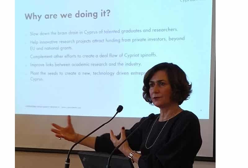 Georgiadou initially said that new legislation has virtually opened a new page in the history of research and business in Cyprus. According to this, state universities are allowed to establish, set up and participate in companies, something that until recently was prohibited. She also mentioned the benefits of this development and briefed the public on a new financing programme Cyprus Seeds. The aim of this programme is to exploit and support academic innovative research of all Cypriot universities and research centres, the Karaiskakis Foundation, the Institute of Neurology and Genetics and the Cyprus Institute, with the possibility of commercialisation.